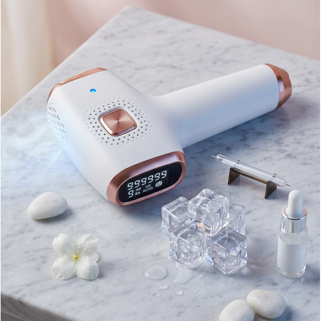 Advanced IPL hair removal with ice-cooling comfort for smoother skin and enjoyable treatments at home.