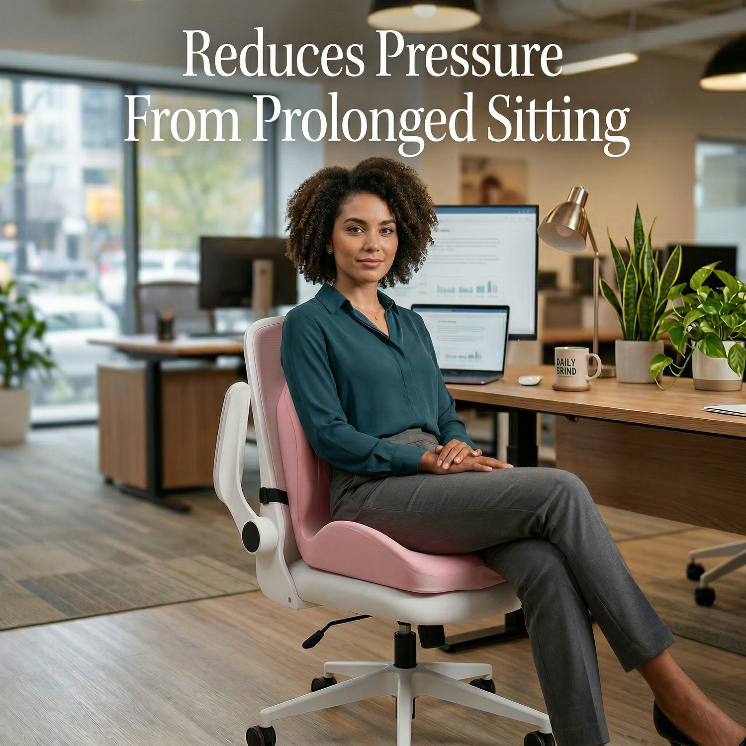 Upgrade your workday comfort with ergonomic seat and back support designed to reduce pressure and improve posture while sitting.