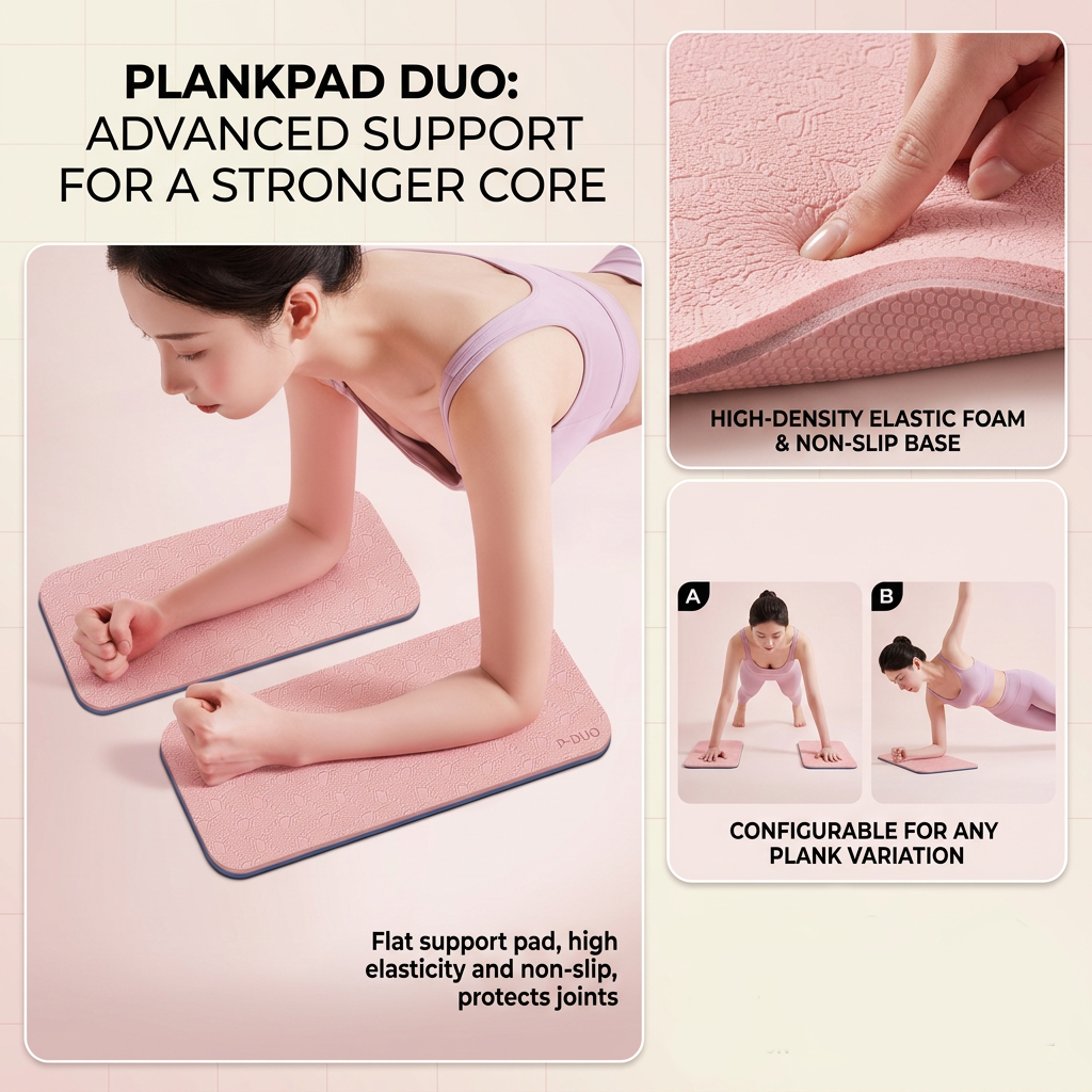 Two compact non-slip pads designed to cushion your elbows during planks, core workouts, and floor exercises
